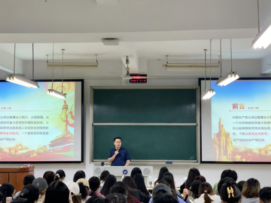 余博老师以党的二十大精神为基点,使二十大精神全方位、多维度的同党课主题有机结合,通俗而深刻地对组织原则和组织制度进行讲解,提高入党积极分子对党的政治认识与信仰追求。他强调要以党的二十大精神为指引,坚定不移听党话、跟党走,希望同学们能创新思辨、坚定信念,将自己的人生理想同中华民族伟大复兴紧密联系,为社会主义现代化贡献湖工学子的力量!