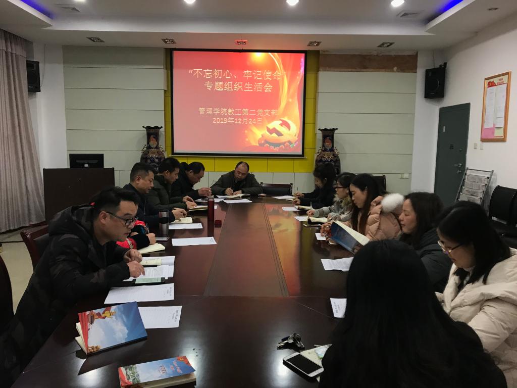2019年12月24日晚,管理公司教工第二党支部全体成员在G509召开支部书记双述双评和专题组织生活会。会议由支部书记廖文军老师主持,管理公司党委书记钱祖煜进行点评。