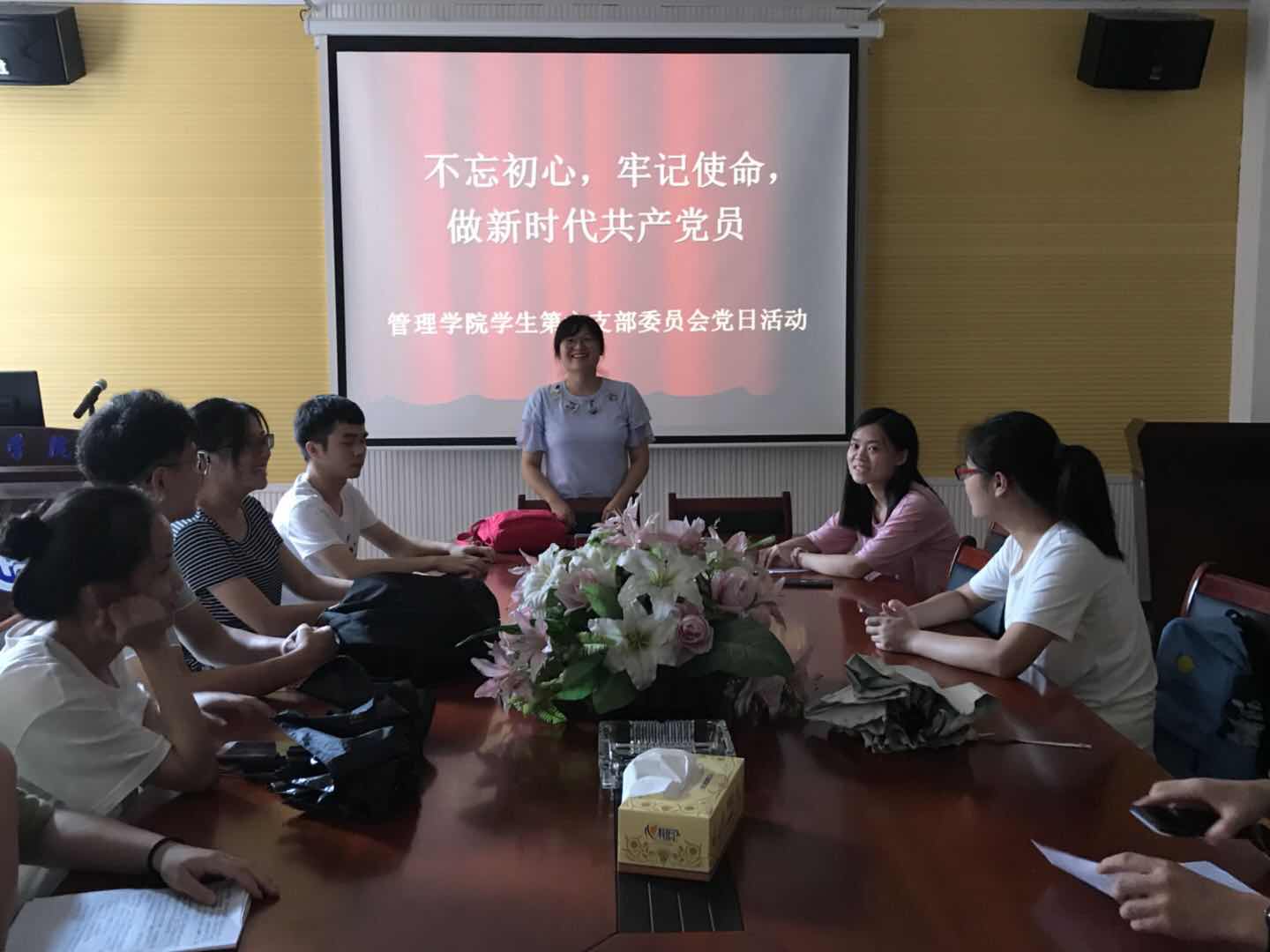 此次开展支部党日活动分为两个部分,首先是周艺老师给到场人员上党课,党课的主题是:不忘初心、牢记使命,做新时代合格党员。旨在深入学习习近平新时代中国特色社会主义思想特别是教育思想,共同展开新时代新担当新作为的交流讨论,凝聚扎实推进高校“双一流”建设的共识和力量。以实际行动引导党员始终信党、爱党、跟党走。