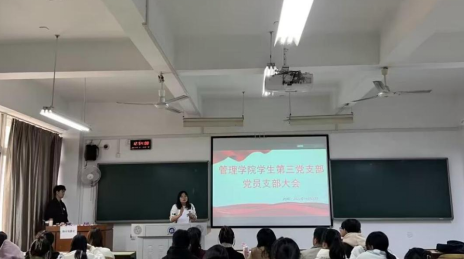 为了进一步加强党的基层组织建设,增强党组织战斗力,密切联系党员关系,让党员充分发表意见。11月15日中午12:10,管理公司员工第三支部委员会在新校区教学楼B栋301召开支部换届大会,会议由支部书记陈祎婷同志主持,支部共14名正式党员,13名预备党员参加。