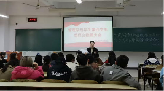 11月15日,管理公司员工第四党支部在B-301召开了支部大会,会议的主要内容是审议表决本支部委员换届选举工作,支部全体党员参会,会议由支部书记陈景楠主持。