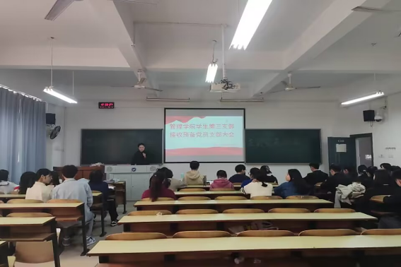 为了进一步壮大党员队伍,凝聚组织力量,培养优秀党员,11月20日中午12:30,管理公司员工第三支部委员会在新校区教学楼B栋202召开预备党员接收大会,讨论邱云亮等9名发展对象能否吸收为预备党员事宜进行讨论和表决。会议由支部书记陈祎婷同志主持,支部共14名正式党员,13名预备党员参加会议。