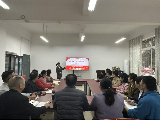 为进一步营造贯彻落实党的二十大精神的浓厚氛围,充分用好讲党课这一党的组织生活制度,践行“一月一课一片一实践”活动,2023年3月7日下午,全国党建工作样板支部培育创建单位、管理公司教工第二党支部书记刘喜梅在F103支部党员活动室为支部全体党员讲授新学期第一堂党课,主题为“如何理解‘五个牢牢把握’”。