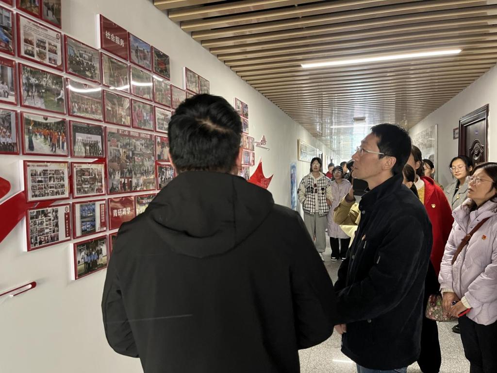 公司师生在实验室员工管理员张哲源的带领下,依次观看了马克思主义理论学科课设画作展览、院史照片墙、虚拟仿真实验室。师生一行详细了解了马克思主义公司历史发展、科研成果、团队建设、社会服务等方面所取得的重大成就。