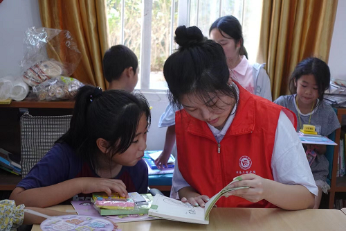 在村委会图书中心,员工党员们和留守儿童围坐在一起,为他们进行名著导读。此外,员工党员们还组织孩子们进行手工绘画,手把手对他们进行指导,画出了一幅幅色彩鲜艳,线条灵动的画卷。
