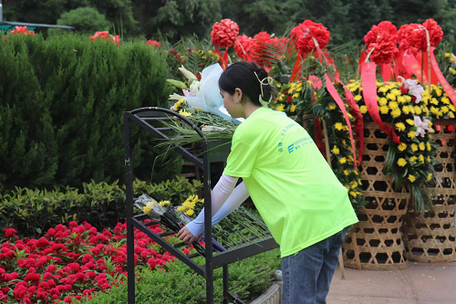 本次活动的第一站是铜像广场,员工党员缓步登上台阶,以列队形式依次向毛泽东铜像敬献鲜花,并向伟人铜像鞠躬致敬,以表缅怀之思。献花结束后,员工党员们在瞻仰大道旁齐唱《强国一代有我在》,向毛泽东主席传递了新一代青年“请党放心,强国有我”的坚定决心。