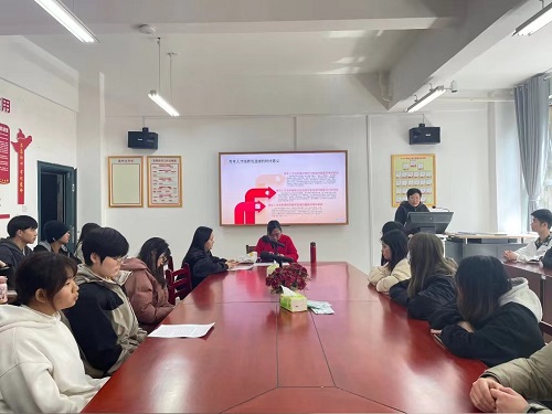 2024年3月19日中午,经济公司员工党支部书记李军花组织全体员工党员在教学楼G-115开展“汇聚青春力量,铸就时代辉煌”主题党课学习,党课由学办主任戴晶晶主讲。