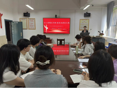 会议由支部书记彭小玲主持,在她的引领下,学习活动正式拉开序幕。在学习环节,多位党员分别负责领学重要内容。首先,彭小玲带领大家深入研读《习近平关于加强党的作风建设论述摘编》,使党员们深刻认识到加强党的作风建设的重要性和紧迫性。接着,党员刘思博对中央八项规定及其细则精神进行了详细解读,帮助党员们进一步明确行为准则,强化纪律意识。此外,党员饶妍恬领学了习近平关于强化教育对科技和人才支撑作用的重要论述,激励党员们在学习和工作中积极进取,为人才培养和科技发展贡献力量。