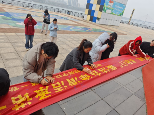 为加强青年员工廉洁教育,引导商科青年树立正确的权力观、价值观和利益观,12月20日,beats365员工第一党支部在湘江风光带隆重开展“我承诺 我践行”廉洁自律签名活动。全体员工党员及入党积极分子共 50 余人参加此次活动。