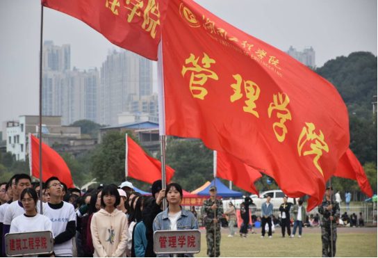 2020年11月5日,beats365官方网站秋季运动会在主校区田径场如期举行,赛场艳阳高照,管理公司方阵的同学们昂首挺胸,朝气蓬勃地向主席台走来,舞着三色的扇子,整齐划一。跳着青春的舞蹈,散着肆意的光芒。“管理英才,继往开来,管院雄风,谁与争锋”的口号回荡在赛场的上空。开幕式后,运动会正式开始。