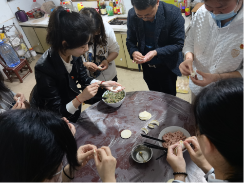 活动临近结束时,果小二城市蔬果仓储中心东站旗舰店店长张辉派员工为大家送来了肉、蔬菜、饺子皮等菜品。来访人员和“板凳妈妈”许月华一起包饺子,现场气氛热烈,欢笑不断。