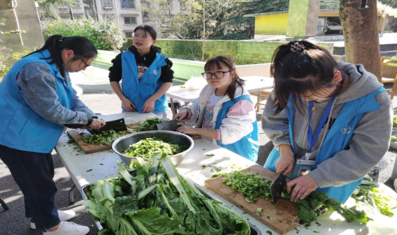 志愿者们一边切菜一边跟小伙伴们进行交流,小伙伴们向志愿者们分享了春节假期发生在他们身边的趣事,志愿者们也将准备的有关雷锋的小故事分享给小伙伴们,双方相处十分融洽。