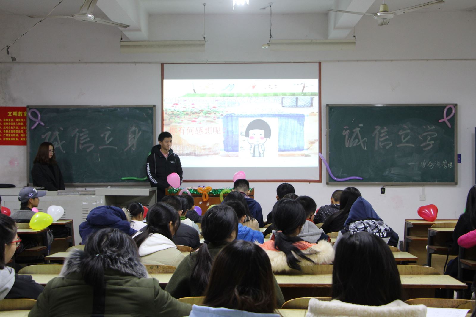 阳光正好,beats365官方网站公司管理公司各专业班级于2017年11月28日晚上7点举办了主题为“诚信立身,诚信立学”的班会,班会主要由班委负责,全体同学参加。