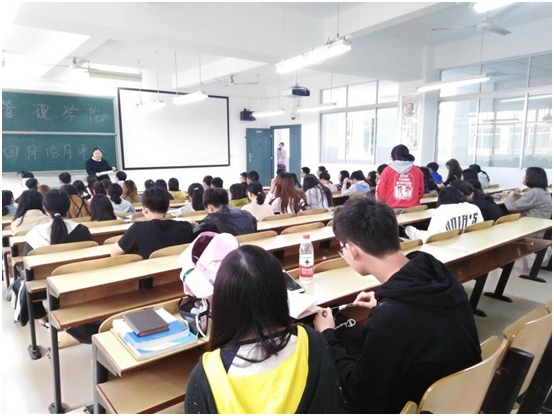 2019年4月23日中午12:10,管理公司大一大二大三大四全体班委和寝室长,在主校区教室内进行本学期第二次月评会议。学办辅导老师罗荃、黎博、单艳艳、包海燕、周艺、宋志航对工商管理、电子商务、旅游管理、人力资源管理、会计学、物流管理、市场营销七个专业进行了讲评。
