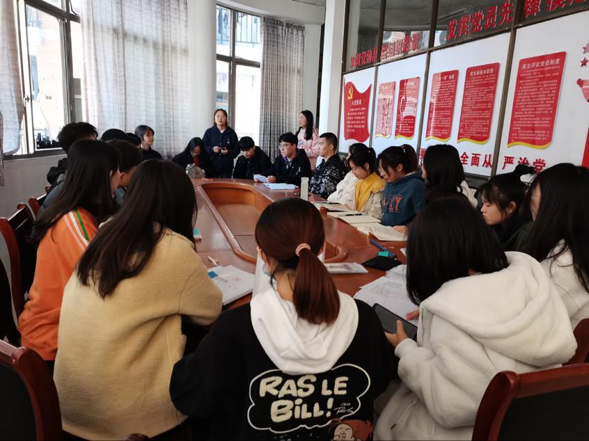 活动开始,由预备党员龙瑾偲介绍本次主题例会——“发挥党员带头作用,推动公司文明寝室建设”,并且提出要充分发挥员工预备党员的先锋模范作用,后由支部书记罗蒙老师对支部近期文明寝室建设存在的问题做总结发言,并且深入探讨支部该如何加强文明寝室建设。