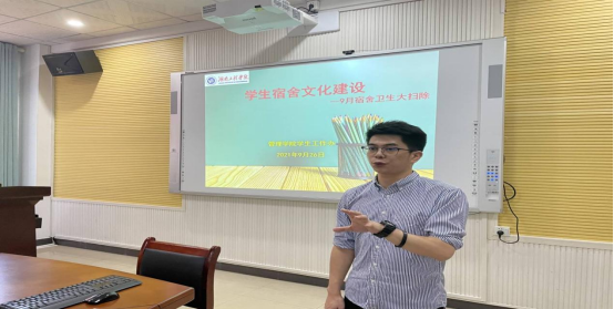 为了更好建设管理公司积极向上的精神风貌,不断提高寝室生活质量,完善员工们的精神追求。9月26日,管理公司员工工作办在主校区F104举行“员工宿舍文化建设”会议。出席会议的有学办辅导员罗蒙,员工会干部以及管理公司各班班长。