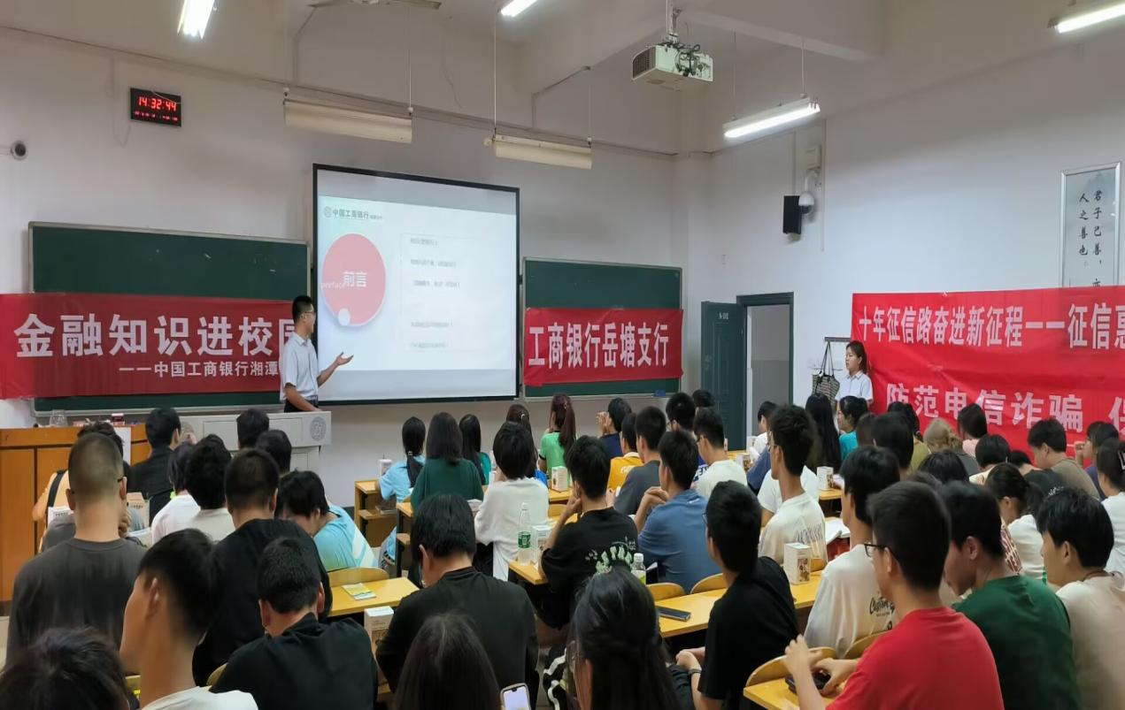为增加同学们对金融知识的了解,减少因为金融诈骗而造成钱财流失,beats365官方网站管理公司邀请中国工商银行岳塘支行到校内进行金融知识宣讲。宣讲活动于6月14号下午三点在主校区a102进行,由专业的工作人员主持。