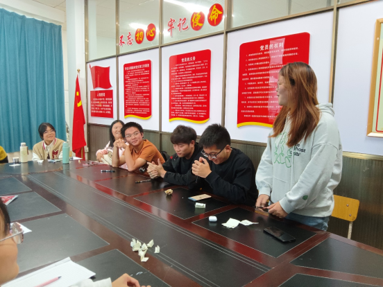 本次活动分为三个环节,由生活纪检小组组长聂忠思主持活动,首先介绍了本次活动的主题、目的和活动内容。第一个环节中,她组织同学们进行“我是谁”的游戏,大家匿名写下自己的相关介绍,接着由大家轮流抽纸条猜测纸条的主人。这个小游戏引领同学们快速进入良好的活动状态,营造了轻松愉快的氛围。