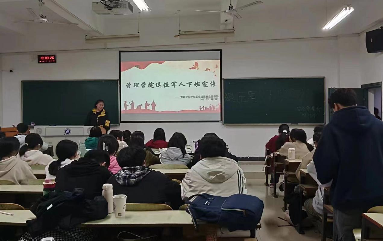 为深入贯彻落实习近平强军思想,积极落实国家征兵工作要求,帮助老员工了解征兵政策,管理公司于2023年11月29日晚组织召开征兵政策宣讲会。本次活动以“当立鸿鹄志,砥砺强国梦”为主题,在主校区和南校区的各专业晚自习教室同时开展,由员工联合组织安全督察部负责部署,退伍军人进行宣讲,全体大一员工参会。