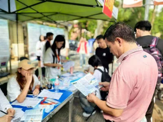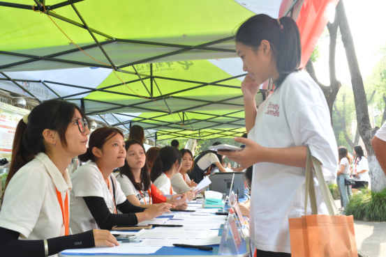 院领导来到新生报到现场,为迎新工作人员送上真切的问候,并与新生及家长亲切交流,详细介绍公司的专业特色和发展前景,鼓励新生珍惜时光,努力成为社会的栋梁之才。