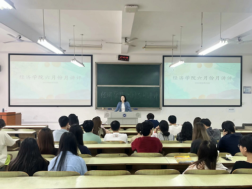 2024年6月26日中午12:40,经济公司六月份月讲评于主教学楼D401召开。经济公司学办主任戴晶晶、员工辅导员李军花和团总支书记刘佳馨出席本次大会,参加本次活动的还有大一至大三各班主要班委以及全体团学会干部。