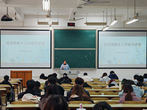 2024年12月18日中午12点40分,经济公司于主教学楼D101召开十二月份月讲评,学办主任戴晶晶,员工辅导员李军花、团总支书记刘佳馨出席本次大会,参加本次活动的还有大一至大四各班主要班干部以及团学会全体干部。