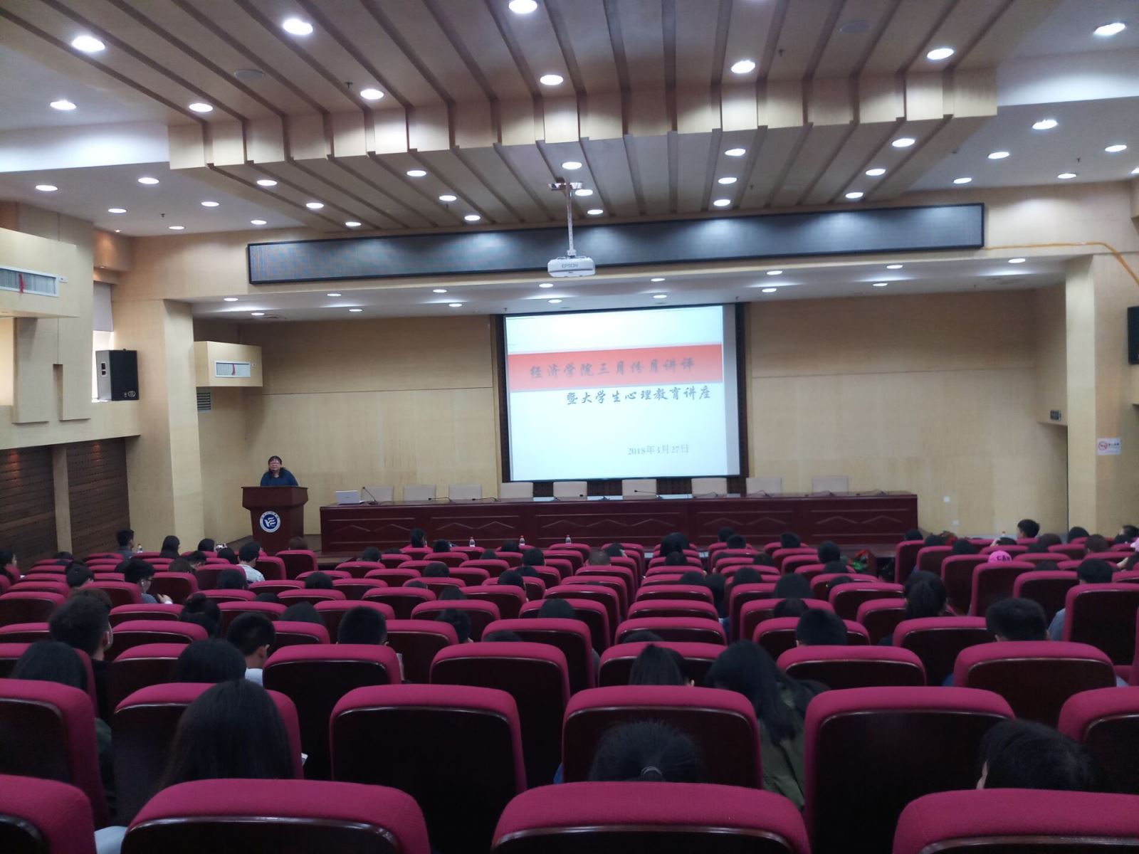 3月27日中午12点20,经济公司三月月讲评在图书馆二报告厅召开。本次会议由经济公司党总支副书记毛晓华、学办主任李军花主讲、团总支书记戴晶晶主持,经济公司大一全体同学及大二、大三各班班委共同参加。