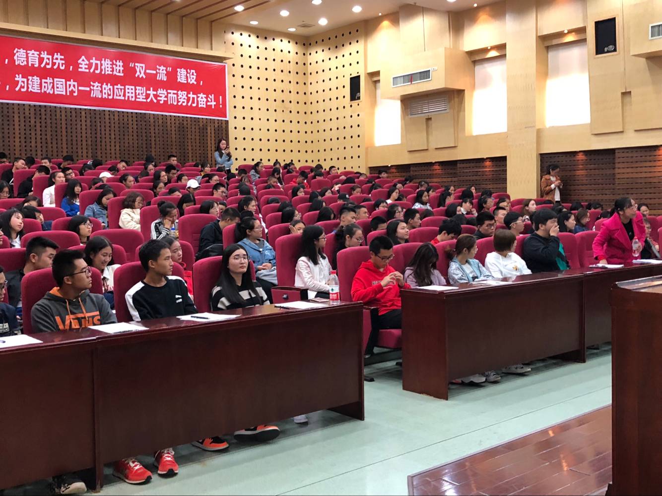 为加强同学的自我管理意识,推进公司工作的顺利进行。10月23日12点50分,经济公司在图书馆二报告厅召开了十月份月讲评会议,本次会议由党总支副书记毛晓华,学办主任李军花,团总支书记戴晶晶主讲,经济公司全体大一新生,大二、大三员工干部及团学会干部参加此次会议。