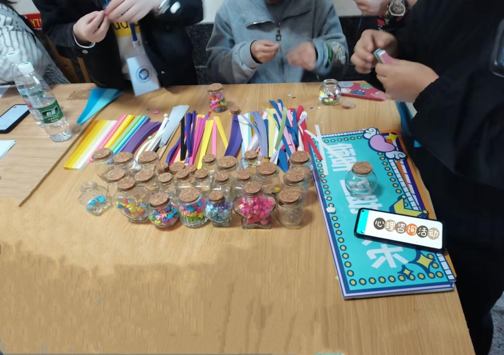 活动伊始,公司心理部干事与心理朋辈引导同学有序参与活动。同学们积极了解心理健康知识,填写专业的心理健康测量表并与老师进行交流。老师为同学的测量表中所体现的心理健康状况做详细分析,耐心地解答同学的心理困惑,为同学进行适当的心理调适。“心语星愿”活动更是吸引大家的目光,在同学们积极参与下,一张张笑脸与一颗颗纸星星组成了一副其乐融融的温馨画面。现场气氛热烈,活动得到了积极的反响。