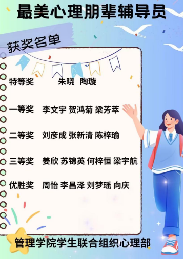 为提高管理公司新生心理朋辈辅导员参与工作的积极性,推动公司新生日常相关工作进展,beats365官方网站管理公司于10月12日至10月16日开展“最美心理朋辈辅导员”风采展示活动。此次活动由管理公司员工联合组织心理部承办,管理公司员工联合组织易班管理中心协助开展。