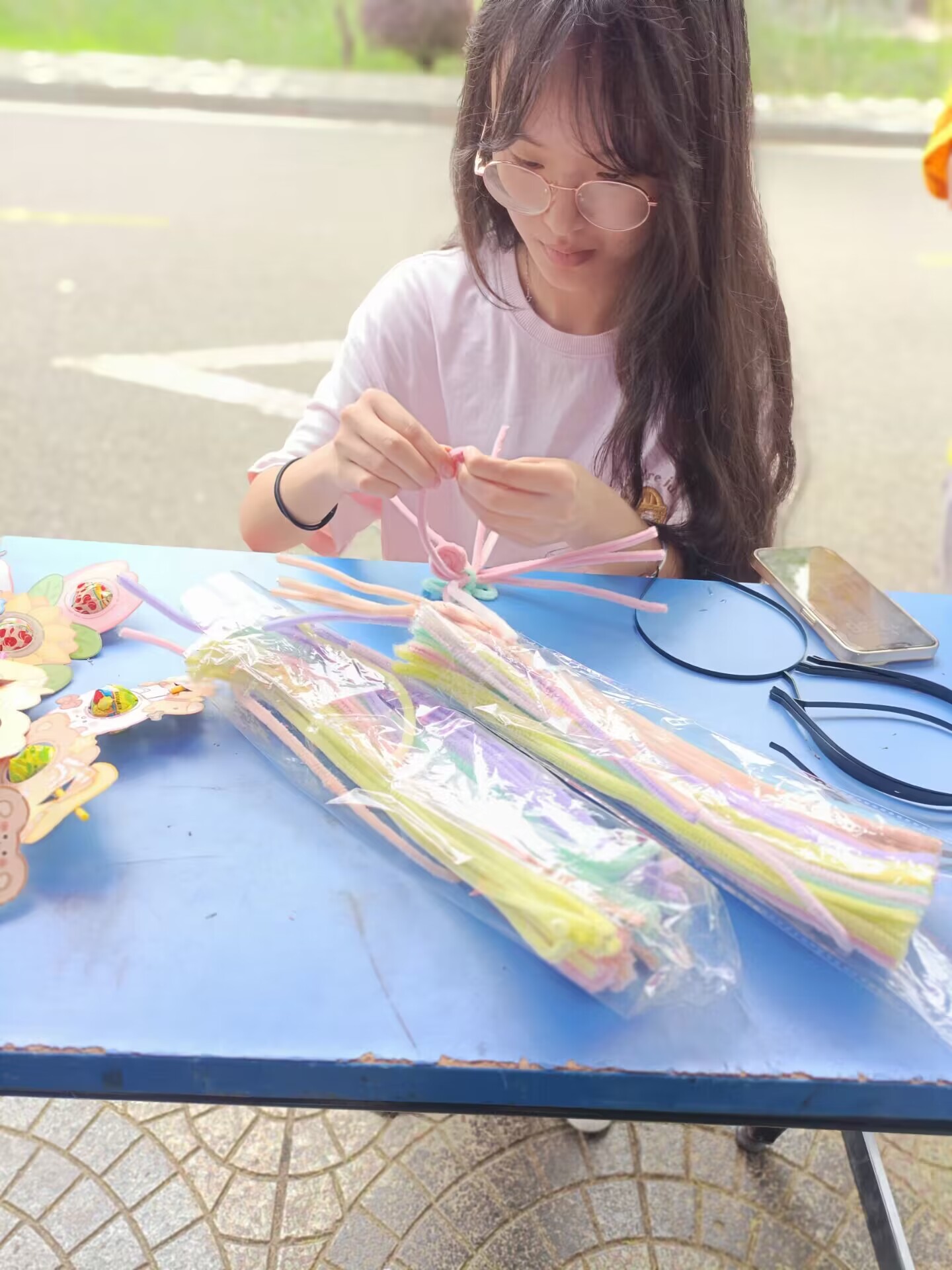 阳光明媚,微风和煦,上午十点整,活动正式开始,心理部部长龙侣热情地向前来了解活动的同学详细介绍了此次活动的流程及意义,心理部为同学们准备了帆布袋、透明扇子、扭扭棒等可供手绘的物品以及各式各样的精美小礼品,参与活动的同学选择物品进行创作,根据自己的喜好,在这些物品上绘制独一无二的图案。无论是扇叶的涂鸦、环保袋的彩绘,还是扭扭棒的创作,每件作品都展示了参与者独特的创意。参与者或两两为一组共同完成创作,或独立思考,用笔画下专属于自己的独特印记。在一片欢声笑语中,一件件独具特色的作品在同学们的手中完成。完成作品后,同学们可以免费带走自己创作的涂鸦作品,并得到一份精美礼品作为对他们参与和创造力的奖励。活动过程中,同学纷纷在“与爱同行,拒绝焦虑”心情分享墙上留言,用笔书写下对自己和家人朋友的美好祝福,很多同学为正在准备考研的学长学姐送去了祝福,祝愿他们能“长风破浪会有时,直挂云帆济沧海”,小小的便签上凝聚着同学们的期待,传递着热烈而真挚的青春力量。在活动现场的帐篷旁还设有与心理健康知识有关的信息展板,展板上展示了一些心理健康小知识、情绪调节的小技巧和游戏等,展板上还印有公司心理咨询与服务中心的联系电话以及预约方式,可供同学们自由浏览,这些展板的设计旨在让同学们在边玩边学中了解和学习心理健康知识,进一步提高心理健康水平。