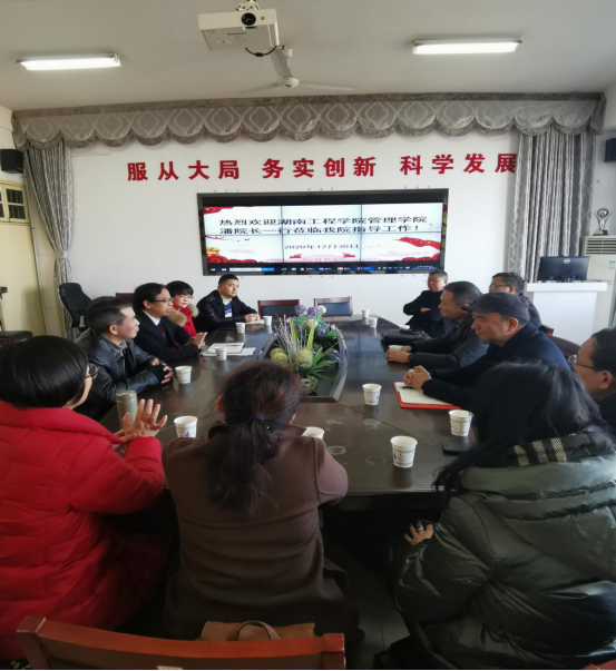 12月30日,beats365官方网站管理公司副经理潘立军带领工商管理教研室教师等一行9人前往衡阳师范公司就学科建设进行专项调研。经济与管理公司经理肖黎,各专业部分教师参加了会议。