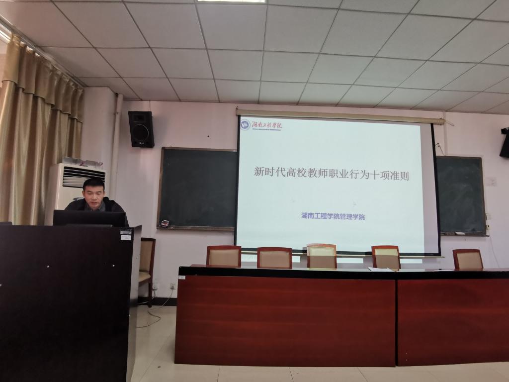 2019年11月19日下午四点,公司全体教师在G-505会议室开展教育部《高校教师职业行为十项准则“六条禁令”和高校教师师德禁行行为“红七条”的学习,由管理公司书记钱祖煜主持。