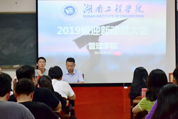 2019年9月12日星期二下午4点30分,为落实2019届新生入学报道工作,管理公司在G505成功召开"2019年迎新动员大会"。此次会议由公司党总副书记张宏老师与学办主任谭超老师主持,各辅导员老师、2019届新生班主任等迎新工作组成员参加。