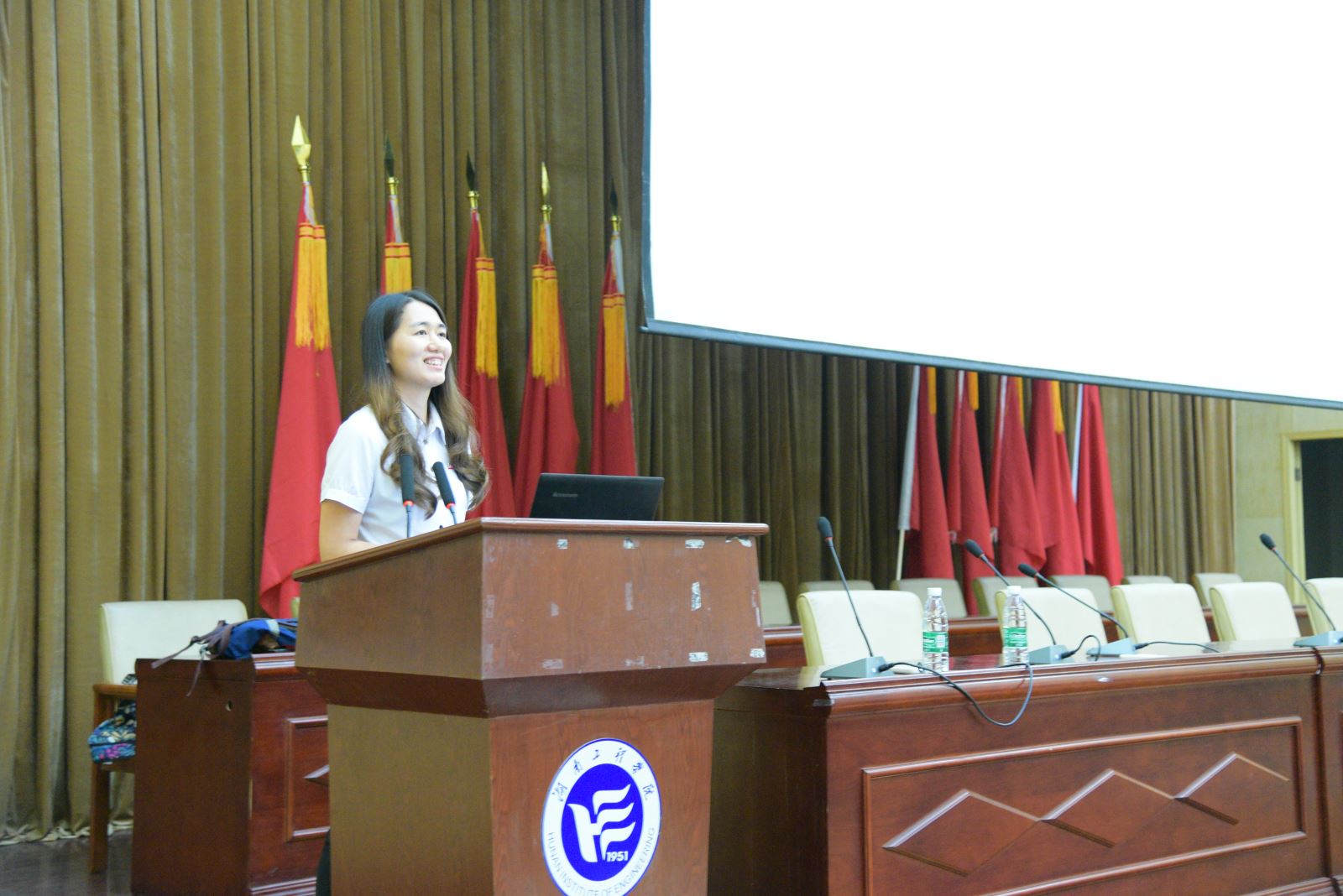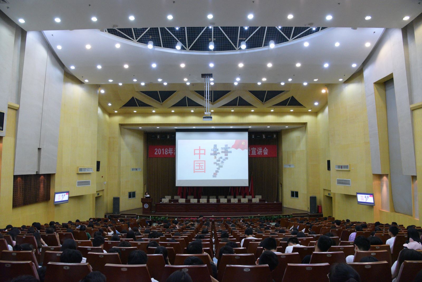 第一位宣讲老师是来自外国语公司的党总支副书记黄琴老师。黄老师从“共筑中国梦,共担青年责”这一主题出发,讲述了教育对中国梦实现的重要价值、个人对教育的重要价值以及个人对中国梦实现的重要价值,并列举湖工学子的优秀事迹进行讲述。随后,机械工程公司辅导员曾依依老师以“共赴新征程,共担新使命”为题,从开启新时代、新征程、新使命三个方面出发,列举改革开放以来新时代中国的重大举措,就中国的新发展提出了见解。两位老师通过图文并茂的精美PPT,深入浅出的讲解,她们亲切的口吻深深地吸引着同学们,使在座的每一位同学没有半点分神。