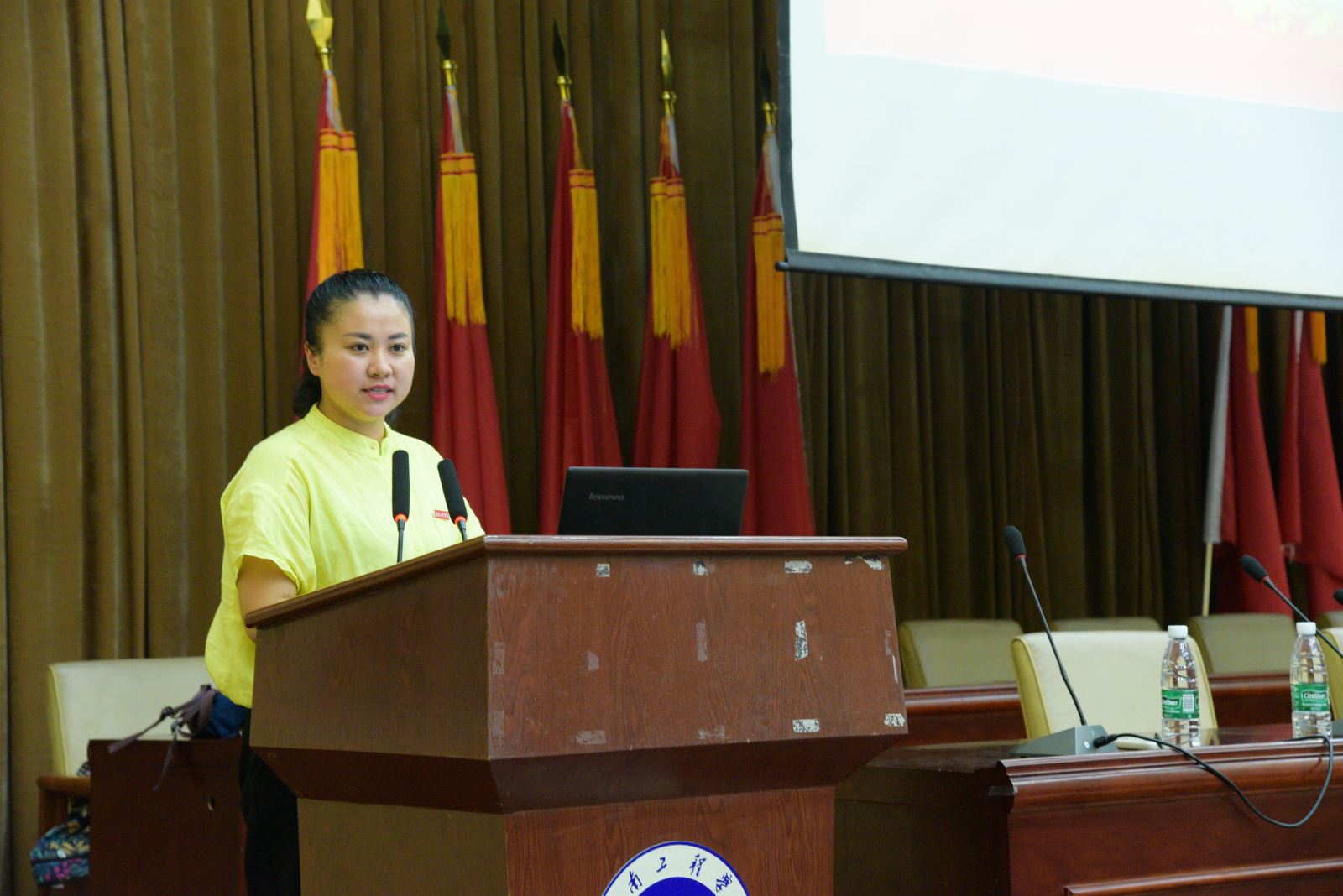 来自纺织服装公司辅导员黄镜燕老师宣讲的课题是“共同的文化基因,共同的自信之路”,从甲骨文文字文化说起,再深入中国人的生活习惯,传统文化等方面,无一不体现出我国的文化底气与文化自信之所在。最后她还呼吁广大学子,不忘本来,吸收外来,面向未来,肩负起中国青年的文化使命。