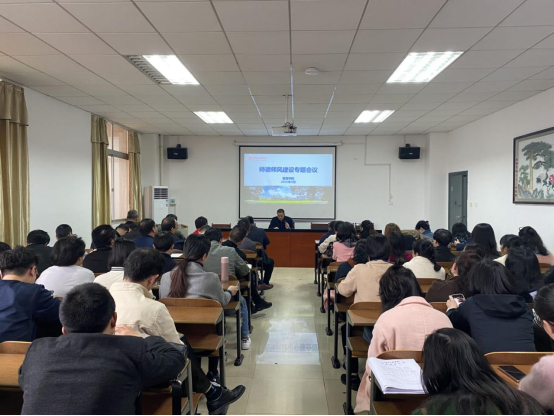 2022年4月12日下午,管理公司在G505召开师德师风建设专题会议,由徐运保经理主持,全体老师参加。