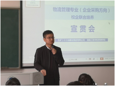 4月1日,公司管理公司邀请校企联合培养单位——五矿二十三冶人力资源部负责人及实习接收部门负责人入校与员工面对面交流,向同学们介绍“3+1”联合培养企业实习的安排情况,并现场回答同学们提出的各类问题。以上问答环节就是宣讲提问答疑的精彩一幕。为扎实推进物流管理专业综合改革,顺利让首批进驻企业进行“3+1”联合培养的同学能够消除顾虑,安心在企业学习,顺利完成培养计划任务,管理公司自去年以来,广泛联系考查业内优秀企业,洽谈联合培养,现已与京东、苏宁易购、德邦物流、五矿集团等业内知名企业达成联合培养意向,后期将陆续来校作联合培养宣讲。此次来宣讲的五矿二十三冶建设集团有限公司是以建筑施工、房地产开发、矿业、基础设施投资为主业的大型企业集团,为世界500强企业——中国五矿集团有限公司成员企业,中国五矿一类重要骨干子企业。