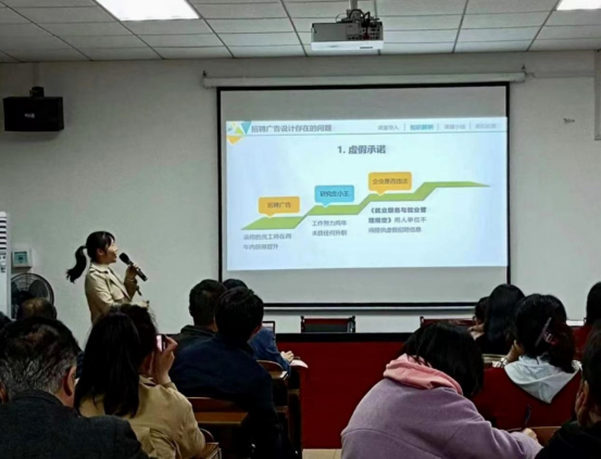 张世免老师的课堂上课节奏平稳有度,像潮水般徐徐涌动,既不过快,也不过慢,让人如沐春风。此外,张世免老师的课堂充分融入了课程思政,在招聘广告设计知识点的讲述中,润物无声的融入了思政点,能够让员工既学到专业知识也建立了良好的三观。