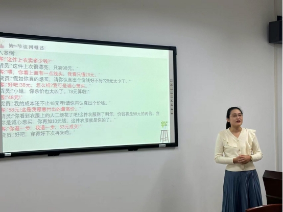 为提升青年教师的公司产品水平,2023年10月10日下午,管理公司举办了第二场的青年教师讲课评课活动。这项活动吸引了众多年轻教师的积极参与,为推动公司产品的创新与提升提供了平台。来自工商管理教研室的李敬老师、曹思敏老师、易文婷老师分别对讲授课程进行了讲课展示。