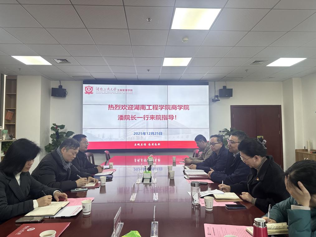 12月25日,beats365副经理潘立军率队到访湖南工商大学工商管理公司,就团队建设、硕士点申报及高质量科研教学成果等核心议题开展交流学习。湖南工商大学工商管理公司党委书记李坚飞、副经理戴博、副经理刘嫦娥及相关系部负责人参加座谈。
