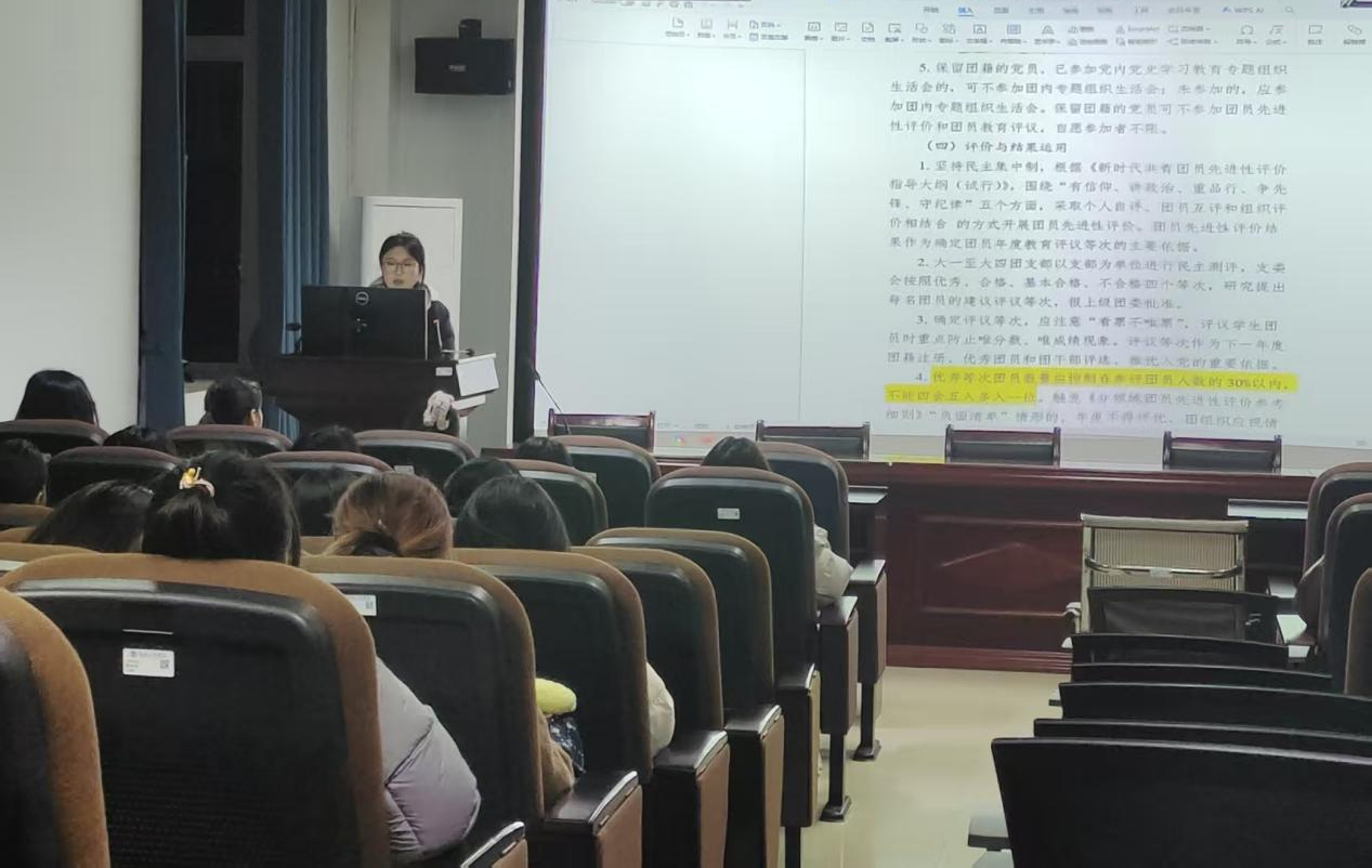 会前,beats365分团委组织全体团支书召开专题培训会,分团委书记邹牡燕带领组织部干部,讲解会议流程、评议标准及纪律要求,为各支部规范开展会议奠定基础。