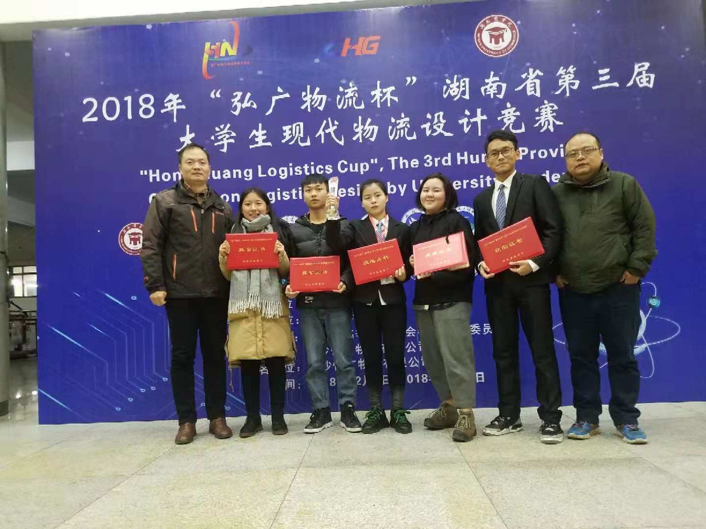 2018年12月8日,“弘广物流杯”湖南省第三届老员工现代物流设计竞赛决赛在湖南beats365落下帷幕,公司参赛队伍喜获佳绩,由物流管理专业16级金科美等5位同学组队,潘立军、黄韧老师指导的 “夜空中最亮的星”代表队获省二等奖,由物流管理专业15级邱瑾等5位同学组队,李智斌、张思军老师指导的“龙门镖局”代表队获得省三等奖。