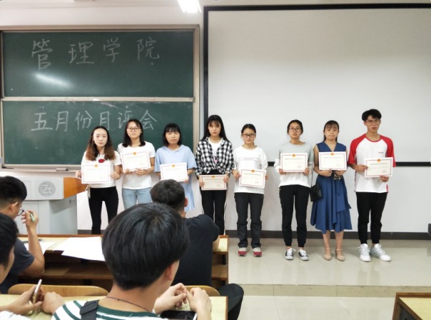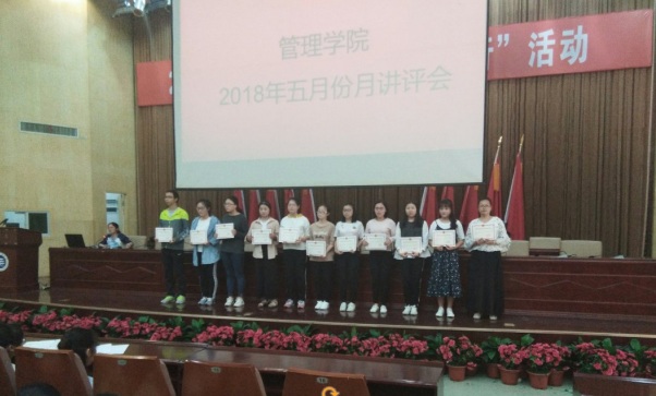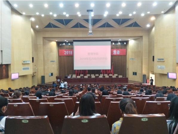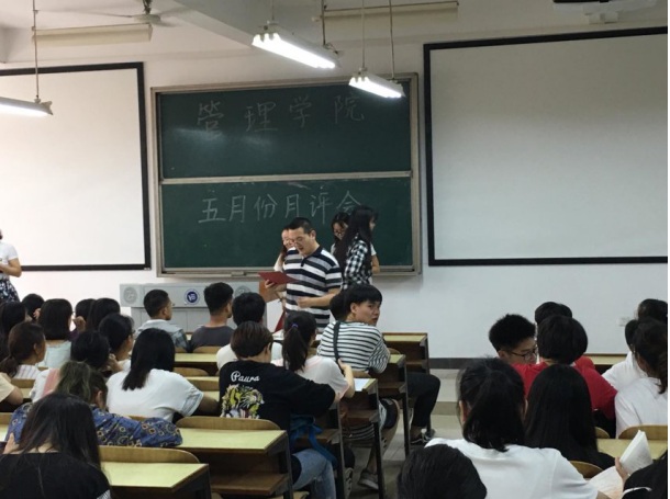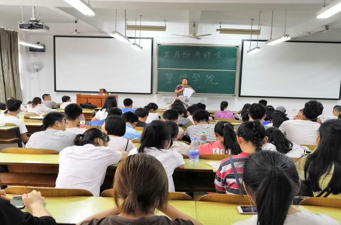 2018年5月3日中午12:00,管理公司大一大二大三全体同学、大四主要班委,在主校区教室内以及一报告厅内进行本学期第三次月评会议。学办辅导老师罗荃、黎博、单艳艳、包海燕、周艺、宋志航对工商管理、旅游管理、人力资源管理、会计学、物流管理、市场营销六个专业进行讲评。
