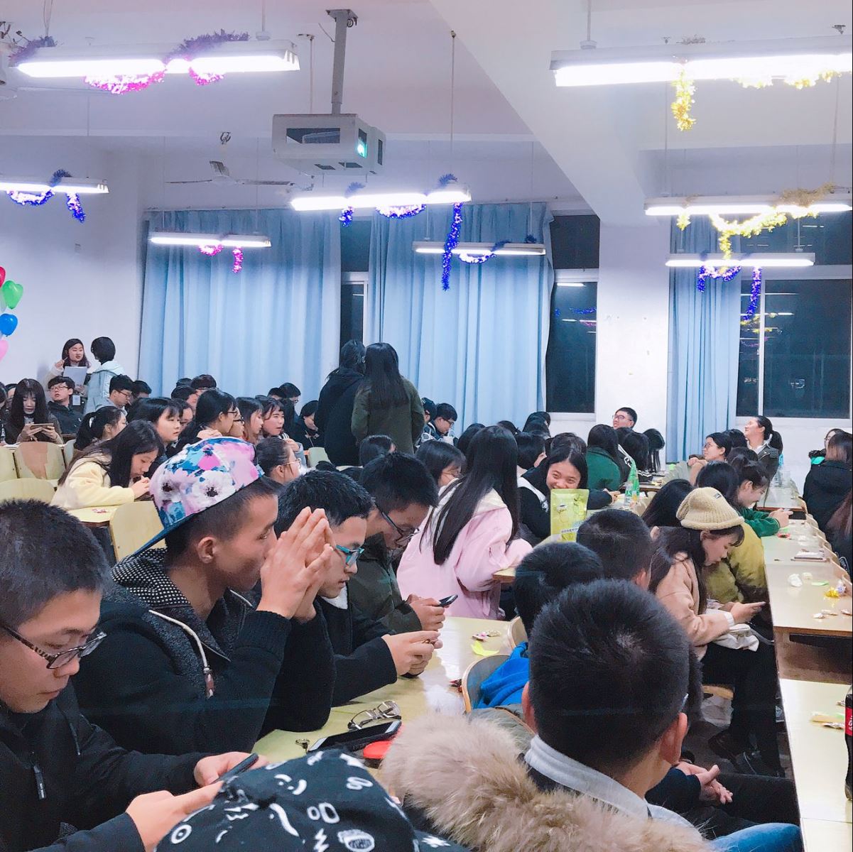 在活动中,大家的火热并没有因肆虐的寒风削弱。各专业同学积极参与活动,教室充盈着欢声笑语。团支书的策划别出心裁,现场布置也散发着青春活力,让我们尽情享受青春的盛宴。本次活动气氛轻松融洽,同学们积极参与。无论是扣人心弦的歌曲还是别出心裁的“一站到底”游戏,大家都释放着青春活力。此次活动中人力与物流两个专业别出心裁的设计让我们赞叹不已,其他专业的16与17级同学间的互动使现场充盈着欢声笑语。尽管本次活动已经落幕,但我们与湖工的故事才刚刚开始,我们的青春正能量不会因此而消散。