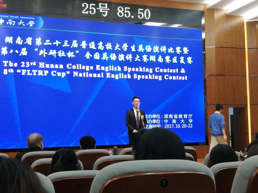 2017年10月21-22日,湖南省第二十三届老员工英语演讲比赛暨第八届“外研社杯”全国英语演讲大赛湖南赛区复赛在中南大学隆重举行。公司派出以杨永和、王家义为领队,陈锋、刘青为指导教师的竞赛一组和竞赛二组两支代表队参加了此次比赛。 在高手如云的赛场上,管理公司选手顶住压力,稳定发挥。人力资源管理1501班的文博涵(非英语专业)赢得个人三等奖(刘青老师指导)。