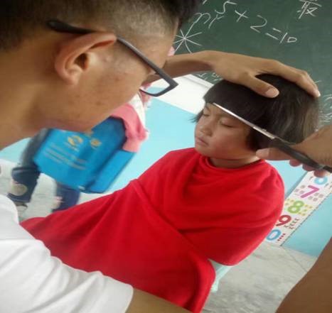 刚到这里时我并不知道这浑浑浊浊的黄色液体可以作为饮用水,我觉得退一万步也最多可以用来洗澡,但事实是这就是我们的饮用水。每家都有好几个水缸或者桶,下雨时,摆放在外面屋檐下接水。孩子们平常在家里喝的就是这种生水,记得有次去孩子家里家访时,我问孩子平时喝什么水,孩子对我说:“老师,有钱的人可以买桶装水喝,我们只能喝家里的水桶里的水。因为我家穷!”听着孩子说,我心里一阵酸楚。因为缺水,连洗澡都变得很奢侈,平常爱运动的我也只能尽量保持少动。有一次好多天没洗澡,浑身不舒服,提着桶走了好几户村民家,终于有位老奶奶家有水,还是在屋檐下接的雨水,奶奶给了我半桶水,走的时候老奶奶用不太流利的普通话跟我交流,大概意思是以后没有洗澡水可以去她家提。因为缺水不能常洗头,孩子们头上都长了虱子,有时候下课我看到他们互相抓头上的虱子,缓解瘙痒。有时候周末我留在公司,给孩子们剪头发,有天下午我甚至给14个孩子剪了头发,剪完我起身的时候从衣服上抖下来二十几个虱子。没有在那里生活的人不太能感受到水的珍贵,洗脸刷牙、煮饭一整天的生活都是靠的这一小桶水。这是生存也是生活,当你觉得自己生活艰难的时候,还有很多人生存都很艰难。
