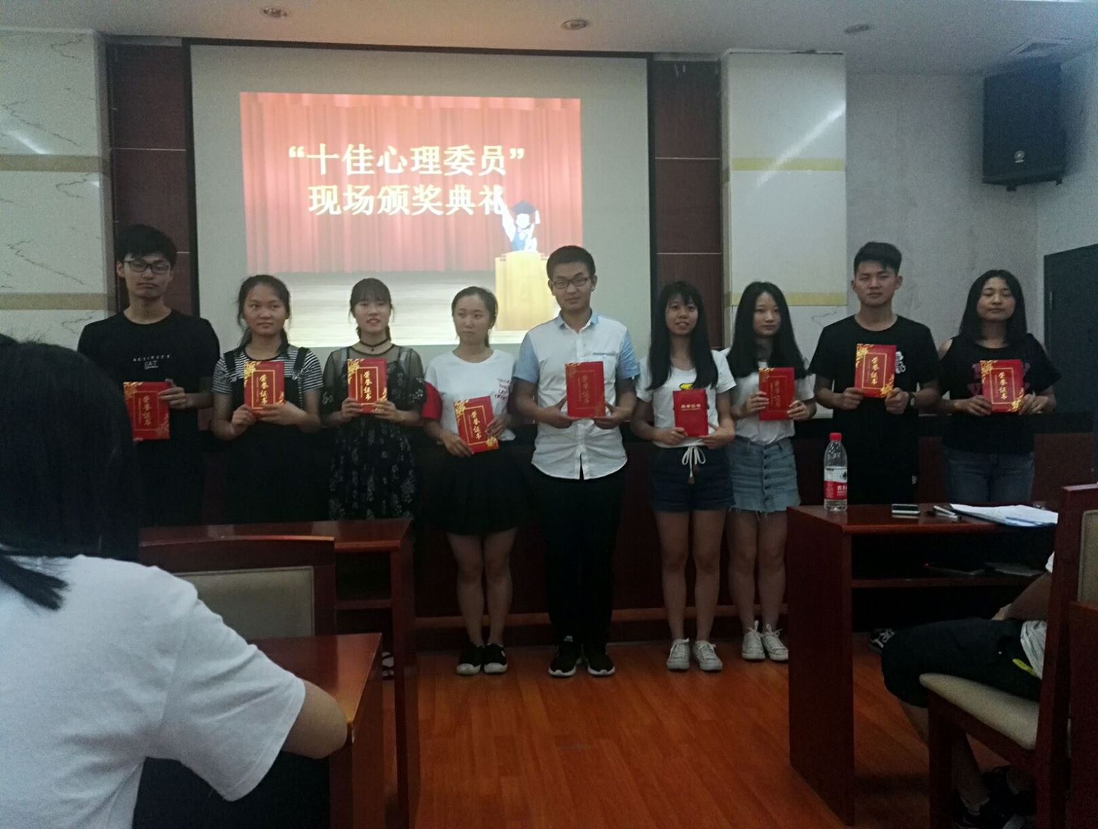 公司人力资源管理1602 梅良栋 和市场营销1502 黄惠佳表现突出,获评校十佳心理委员。