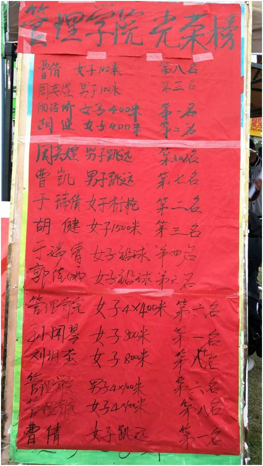 在2016年秋季校运会中,管理公司屡创佳绩。