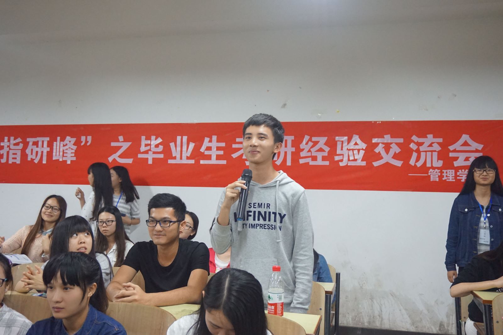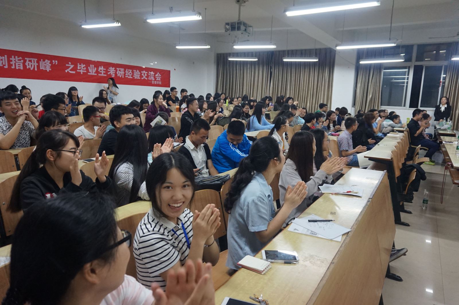 5月25日晚,管理公司 “群英聚首,剑指研峰”考研经验交流会在主校区教学楼D203成功举行。管理公司副经理余博和学办主任罗荃出席交流会,考取研究生的五位毕业生代表作为嘉宾,分享了他们的考研心路历程,为学弟学妹们传经送宝,全院有志考研的150余名员工到场聆听。